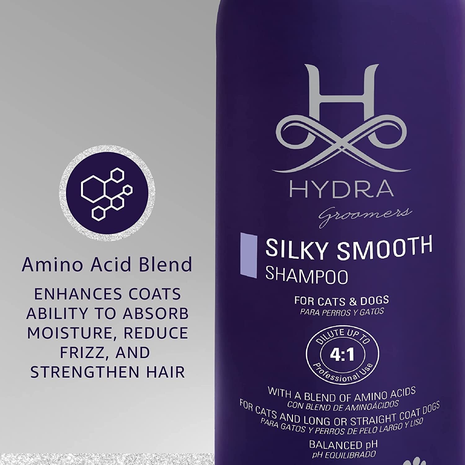 How to use: Topical use. Dilute the Hydra Silky Smooth Shampoo in 4 parts of water. Wet the coat and spread the product, massaging well until a uniform lather is obtained. Rinse and if necessary, repeat the procedure. If the pet is very dirty, pre-wash with Hydra Odor Neutralizing Shampoo. Finish the bath with the Hydra Intense Repair Silky Smooth Mask.