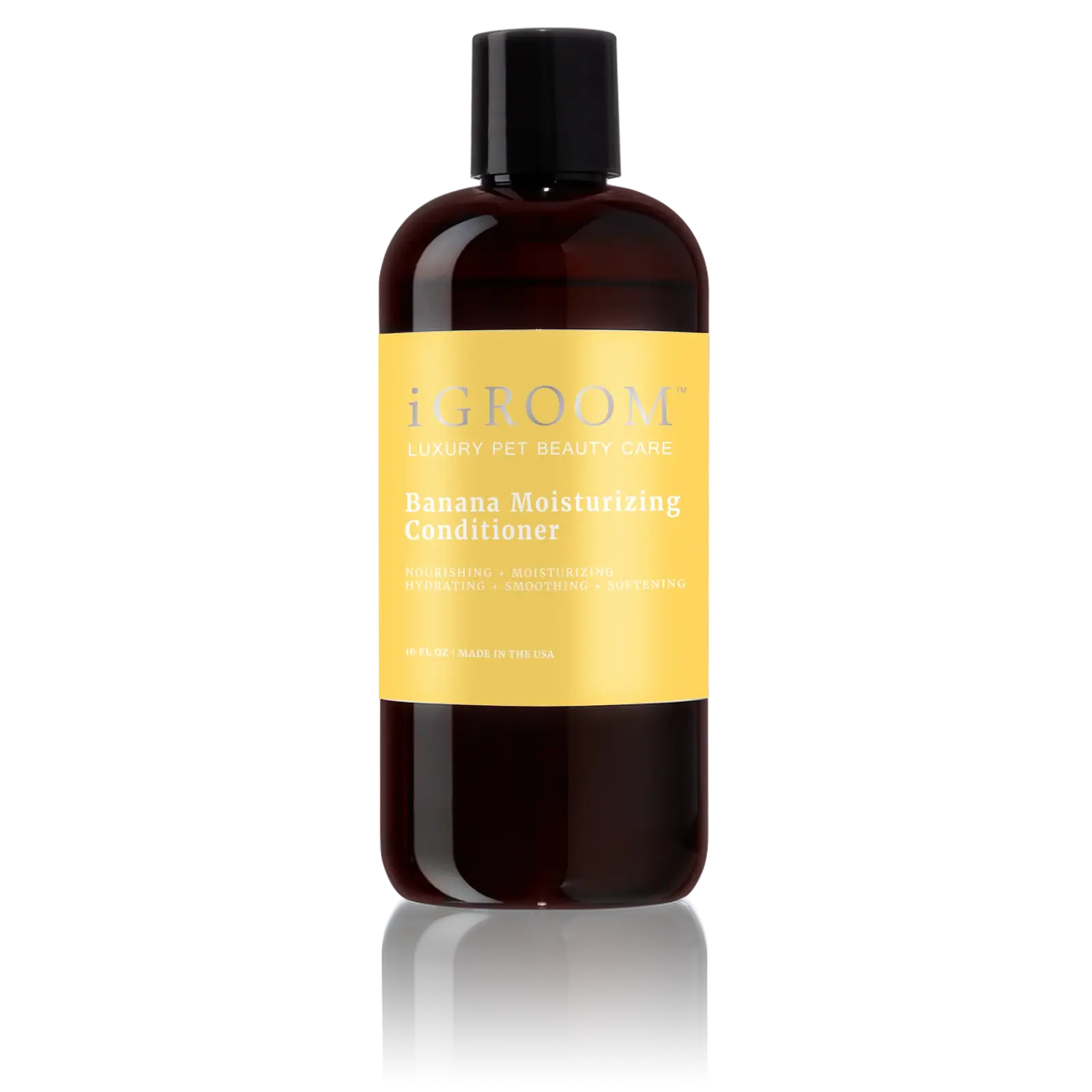 Formulated with nutrient-rich Banana Extract, this moisturizing conditioner helps repair dry and damaged coats. The nourishing formula protects the hair's natural elasticity and helps in deshedding and detangling. Easy to rinse out, the conditioner leaves the coat silky, soft, and shining without leaving build-up or residue. We suggest pairing this conditioner with the iGroom Banana Shampoo for maximum results.