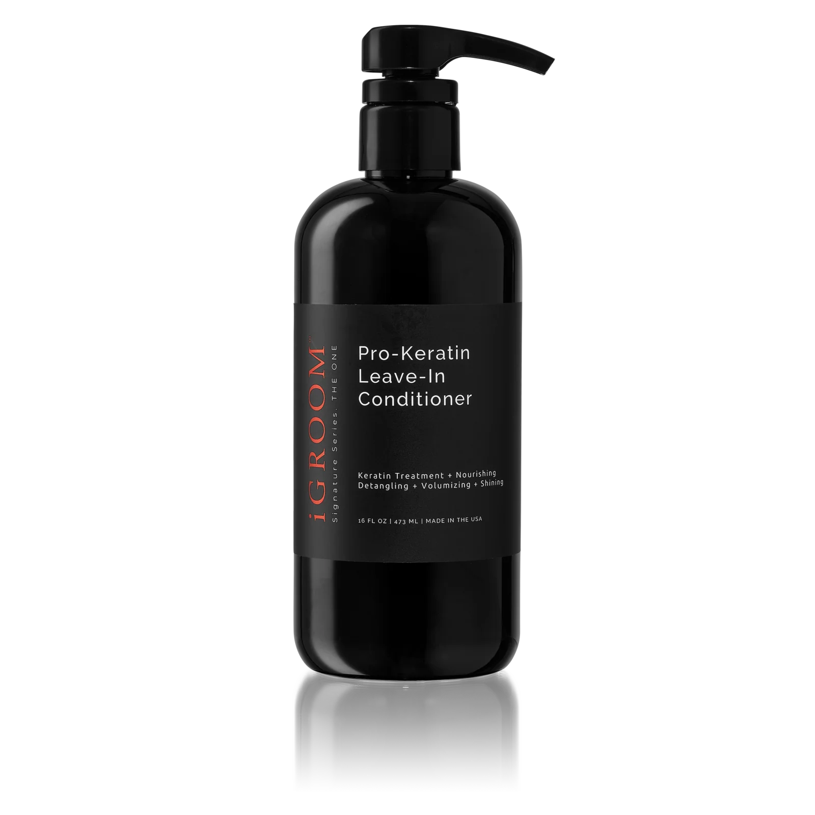 This incredible Pro-Keratin Leave-In Conditioner hydrates, strengthens, detangles, and nourishes the coats. Pro-Keratin Leave-In Conditioner reduces flyaways and enhances the manageability. Fortified with the unique blend of sunflower oil, Argan, and Aloe Vera effectively restores moisture levels and softness. Perfect for wet or dry hair, its non-greasy formula works with all hair types to bring out natural luster and manageability while also making hair stronger and healthier. iGroom Pro-Keratin Leave-In Conditioner helps deshedding, applying the Leave-In conditioner on the shedding areas before blowdrying, or applying it after completed dry.