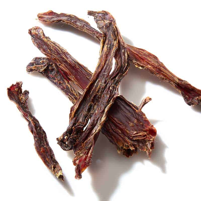 Chicken Breast Jerky – Pure, preservative-free chicken for a high-protein, low-fat snack dogs love.
