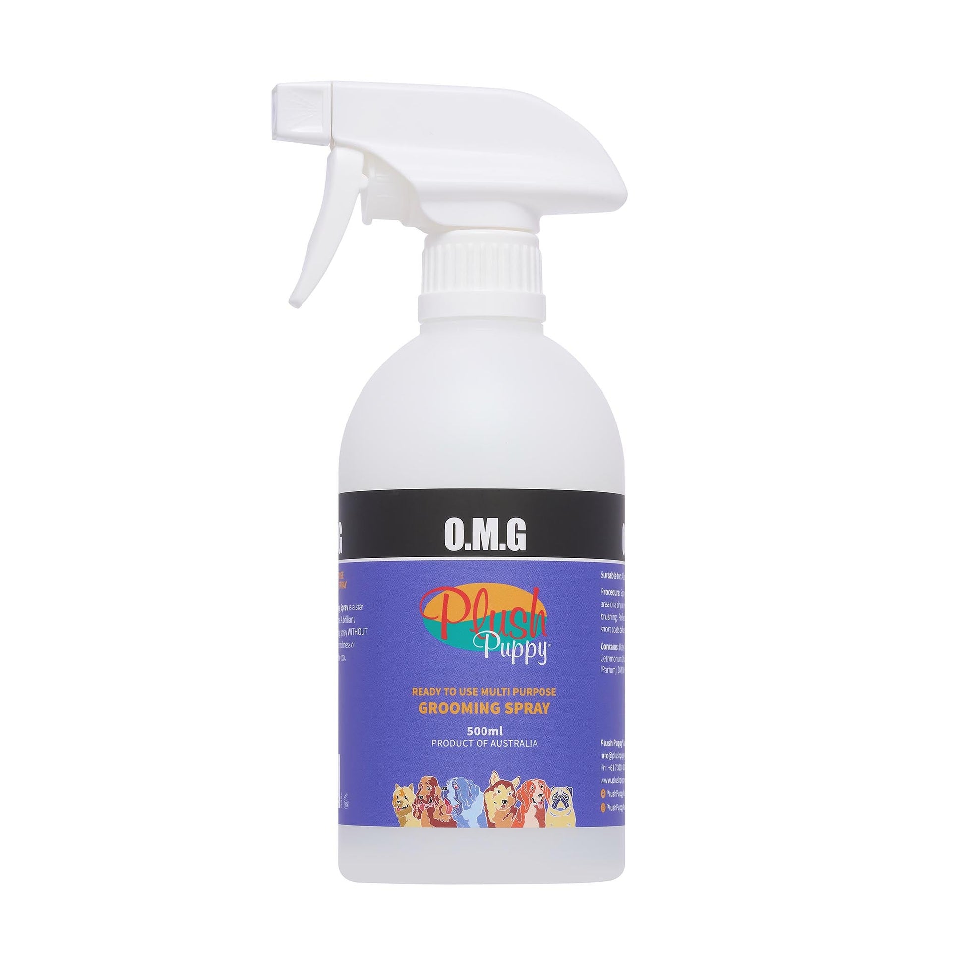 Directions: Spray a light mist of Plush Puppy OMG over the desired area of the coat before and during brushing. Can be used on a wet or dry coat.