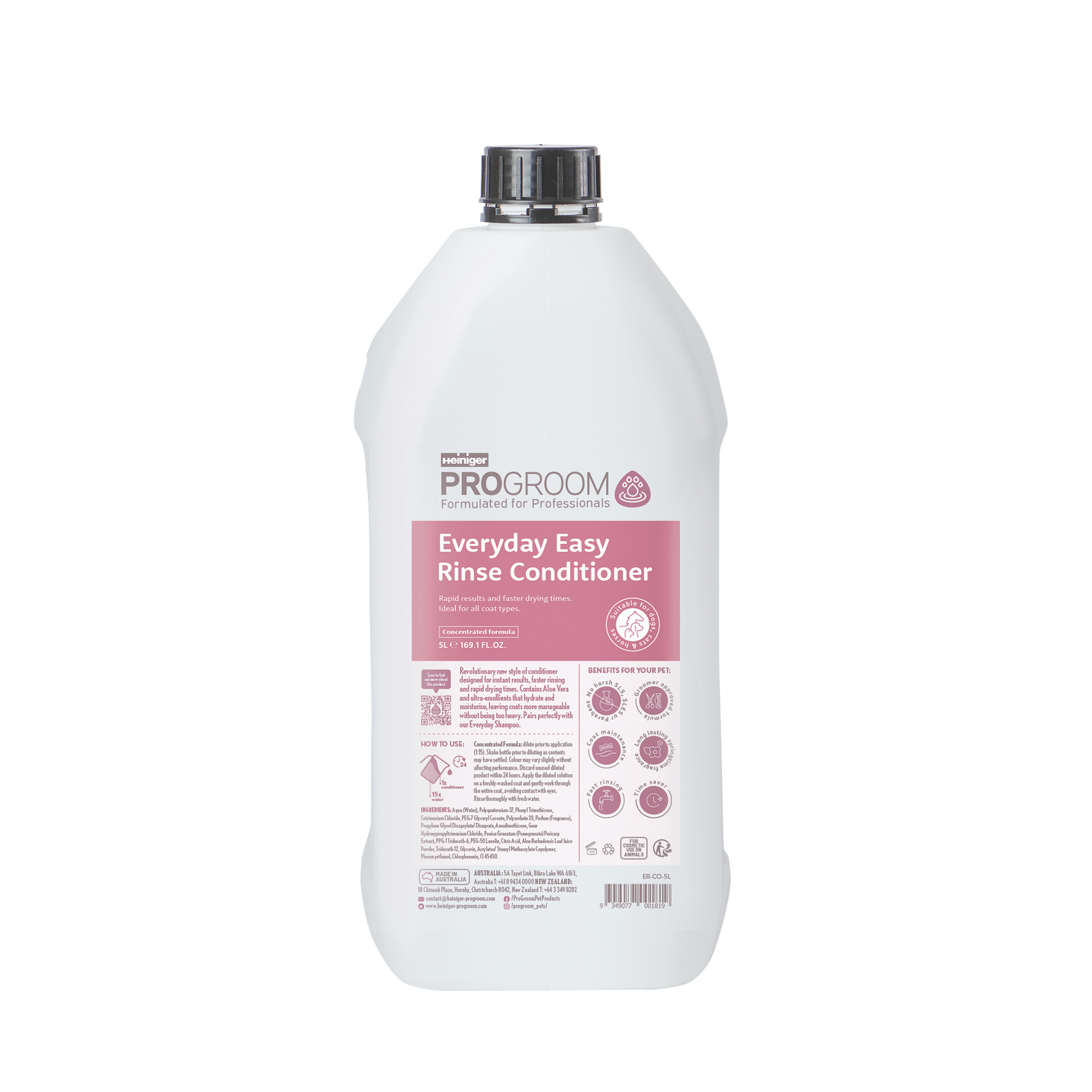Save time with ProGroom's brand new Easy Rinse Conditioner which provides faster rinsing and drying time and leaves your pet smelling fresh for longer!