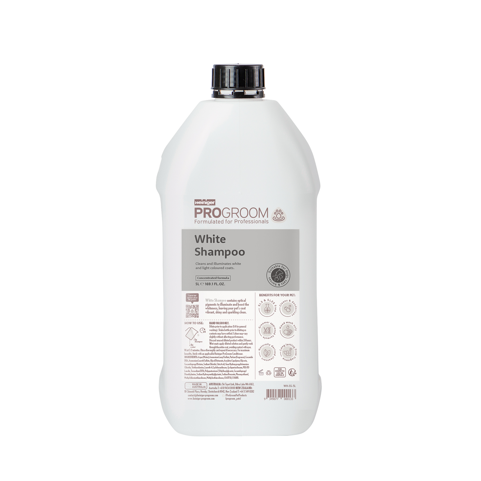 Whitening shampoo with optical brighteners that enhance and make white coats sparkle. The gentle but deep cleaning formula will illuminate and brighten the dullest coat.